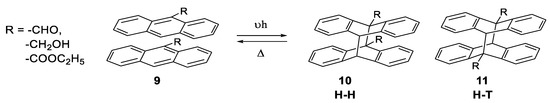 The photochemical dimerization of anthracene and its derivatives upon exposure to UV light is known since 1867 when Fritzsche isolated the dimer product of anthracene irradiated in benzene solution [65].