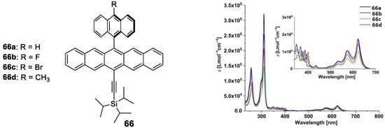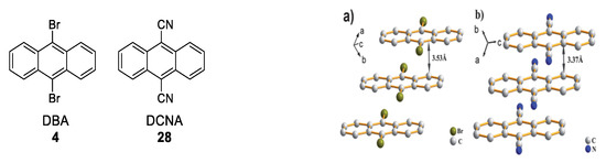 - Hauschild, M.; Chen, L.; Etschel, S.H.; Ferguson, M.J.; Hampel, F.; Halik, M.; Tykwinski, R.R. Anthracene-Pentacene Dyads: Synthesis and OFET Characterization. ChemPlusChem 2020, 85, 921–926. [Google Scholar] [CrossRef] [PubMed]
