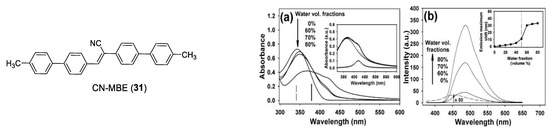 - An, B.-K.; Kwon, S.-K.; Jung, S.-D.; Park, S.Y. Enhanced Emission and Its Switching in Fluorescent Organic Nanoparticles. J. Am. Chem. Soc. 2002, 124, 14410–14415. [Google Scholar] [CrossRef]
