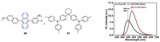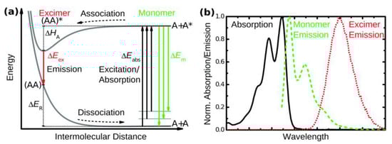 - Vollbrecht, J. Excimers in organic electronics. New J. Chem. 2018, 42, 11249–11254. [Google Scholar] [CrossRef]
