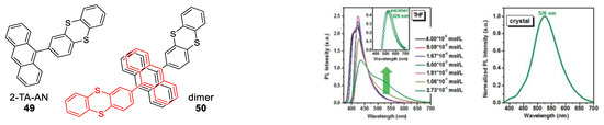 - Banerjee, S.; Both, A.K.; Sarkar, M. Probing the Aggregation and Signaling Behavior of Some Twisted 9,9′-Bianthryl Derivatives: Observation of Aggregation-Induced Blue-Shifted Emission. ACS Omega 2018, 3, 15709–15724. [Google Scholar] [CrossRef]