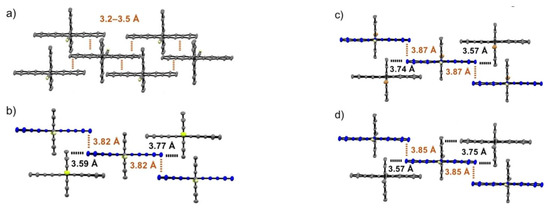 - Curtis, M.D.; Cao, J.; Kampf, J.W. Solid-State Packing of Conjugated Oligomers: From π-Stacks to the Herringbone Structure. J. Am. Chem. Soc. 2004, 126, 4318–4328. [Google Scholar] [CrossRef]