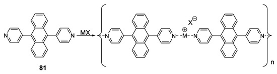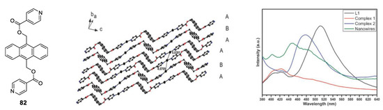 - Dong, J.-L.; Wang, D.-Z.; Jia, Y.-Y.; Wang, D.-H. Three coordination polymers based on 9,10-di(pyridine-4-yl)anthracene ligand: Syntheses, structures and fluorescent properties. J. Mol. Struct. 2017, 1142, 304–310. [Google Scholar] [CrossRef]