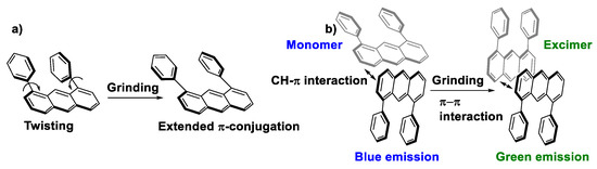 - Kusukawa, T.; Kojima, Y.; Kannen, F. Mechanofluorochromic Properties of 1,8-Diphenylanthracene Derivatives. Chem. Lett. 2019, 48, 1213–1216. [Google Scholar] [CrossRef]