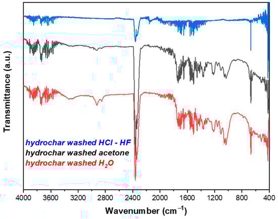 ATR-FTIR spectra of hydrochar after washing with water, acetone and acid (HCl–HF).