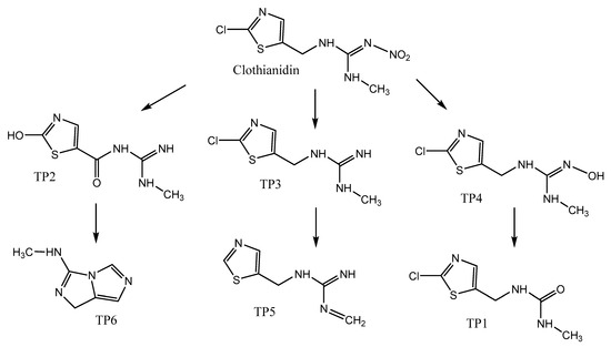 - Li, Y.; Li, Y.; Liu, Y.; Ward, T.J. Photodegradation of clothianidin and thiamethoxam in agricultural soils. Environ. Sci. Pollut. Int. 2018, 25, 31318–31325. [Google Scholar] [CrossRef]