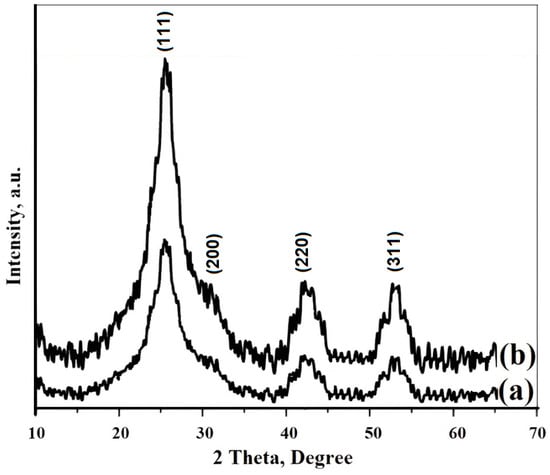 Figure 1 shows the XRD patterns of the ED CdSe polycrystalline electrode and the CD/CBD-combined CdSe electrode, which were analyzed to determine their structural properties. The XRD patterns reveal that the CdSe films have a nanoscale size, indicating crystallite sizes of 10 to 15 nm for the ED film and 5 to 10 nm for the CBD layer, as determined by the Scherrer equation. In fact, the CBD technique favors epitaxial particle growth. The literature states that the major phase of CdSe films is the cubic crystal phase, which is in good agreement with the results found [33,34]. The XRD pattern displays diffractions at characteristic 2θ angles, corresponding to the (111), (220), and (311) planes of the cubic crystal phase. These reflections are referred to as card numbers 75-1546, and their positions agree with the standard diffraction angles of cubic-phase CdSe. Therefore, the dominant structure of the films is indeed cubic. XRD analysis provides information for understanding the structural properties of electrodes containing both ED CdSe and CD/CBD combined with CdSe, revealing nanosized particles and a dominant cubic crystal phase.