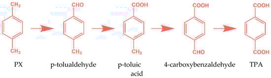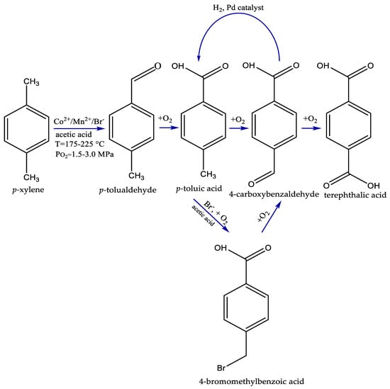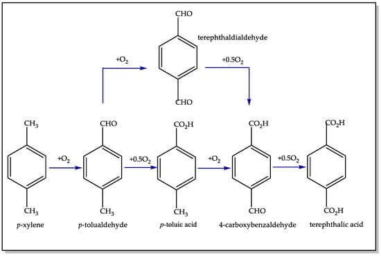 - Tomas, R.A.; Bordado, J.o.C.; Gomes, J.F. p-Xylene oxidation to terephthalic acid: A literature review oriented toward process optimization and development. Chem. Rev. 2013, 113, 7421–7469. [Google Scholar] [CrossRef]