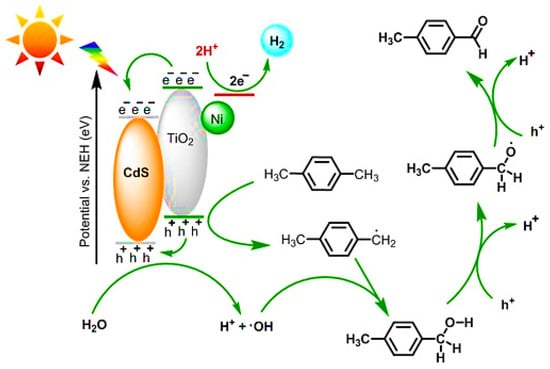 - Toe, C.Y.; Tsounis, C.; Zhang, J.; Masood, H.; Gunawan, D.; Scott, J.; Amal, R. Advancing photoreforming of organics: Highlights on photocatalyst and system designs for selective oxidation reactions. Energy Environ. Sci. 2021, 14, 1140–1175. [Google Scholar] [CrossRef]