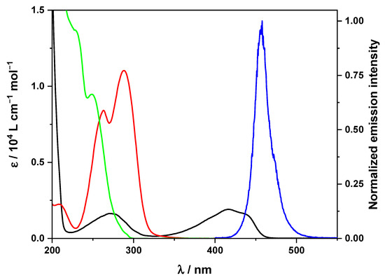 - Singh-Rachford, T.N.; Castellano, F.N. Low Power Visible-to-UV Upconversion. J. Phys. Chem. A 2009, 113, 5912–5917. [Google Scholar] [CrossRef] [PubMed]