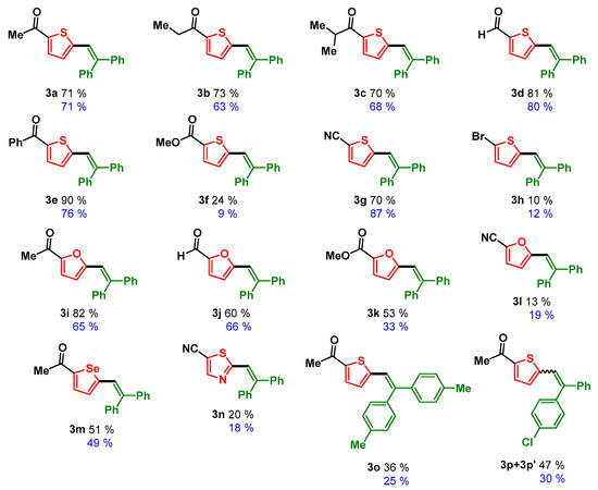 - Lee, W.; Shin, C.; Park, S.E.; Joo, J.M. Regio- and Stereoselective Synthesis of Thiazole-Containing Triarylethylenes by Hydroarylation of Alkynes. J. Org. Chem. 2019, 84, 12913–12924. [Google Scholar] [CrossRef]