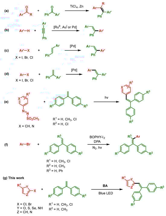 - Chen, J.; Wang, Y.; Li, L. Strategies for the Synthesis of Triarylethylenes: A Comprehensive Review. Chem. Rev. 2021, 121, 1120–1157. [Google Scholar]