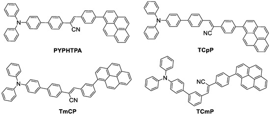 Molecular structures of the reported D–A–D-structured OLs with distinct PC properties (PYPHTPA reported in Ref. [28], TCpP, TmCP and TCmP reported in Ref. [29], respectively).