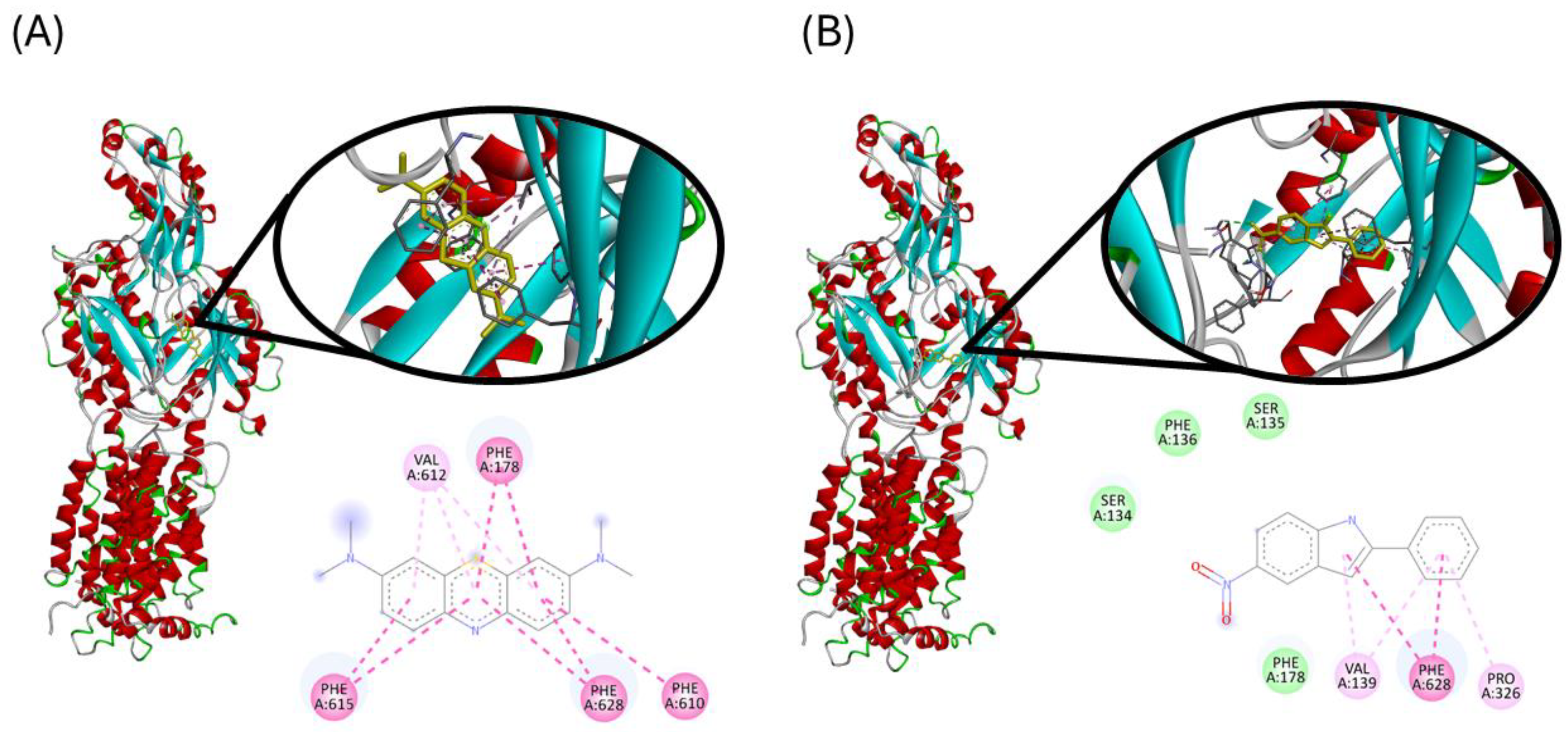 3.6. INF-55 and Methylene Blue Docking Analysis