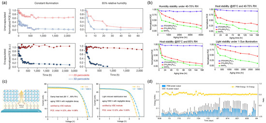 - Sun, K.; Liu, W.; Liu, M.; Yao, K. Rethinking the stability impacts of 2D/3D perovskites. Joule 2024, 8, 3239–3241. [Google Scholar] [CrossRef]