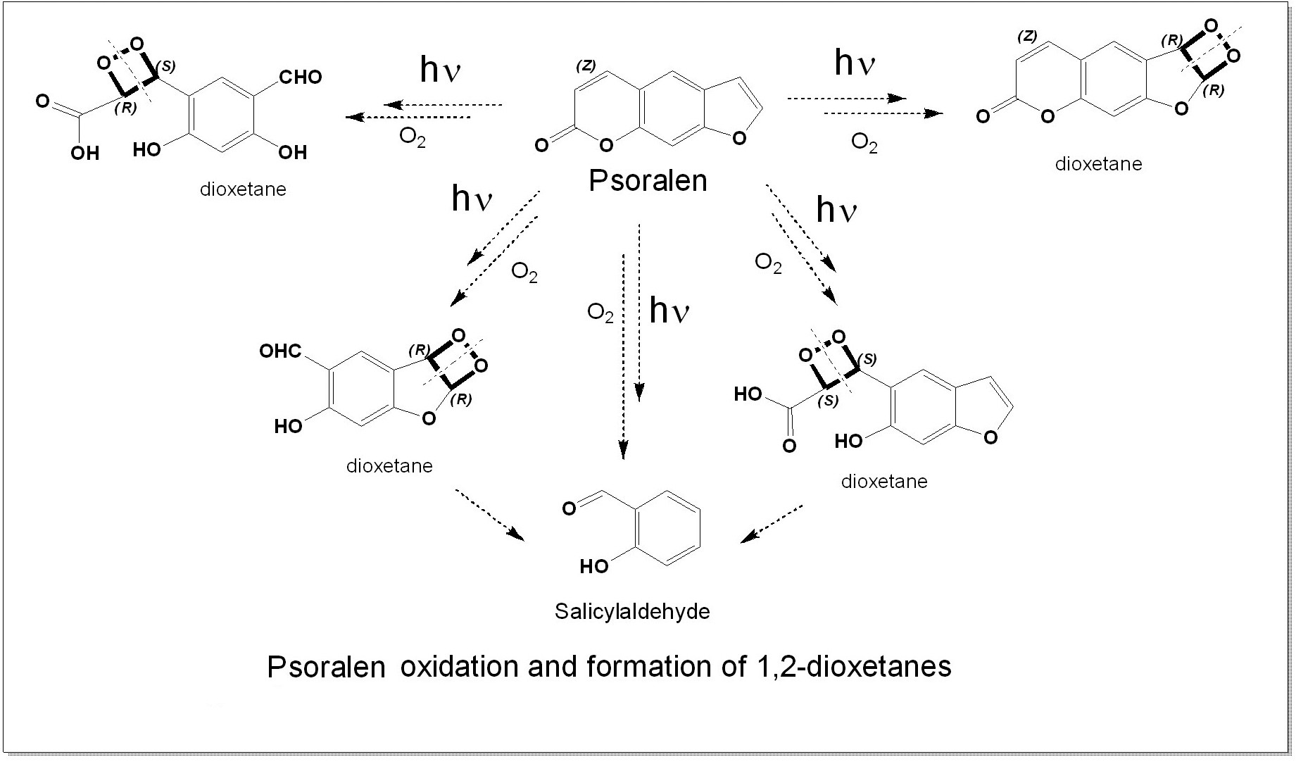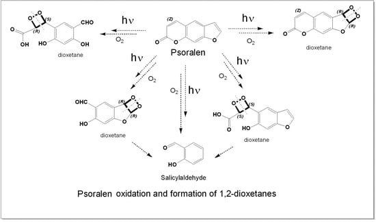 - Wasserman, H.H.; Berdahl, D.R. The photooxidation of 8-methoxypsoralen. Photochem. Photobiol. 1982, 35, 565–567. [Google Scholar] [CrossRef]