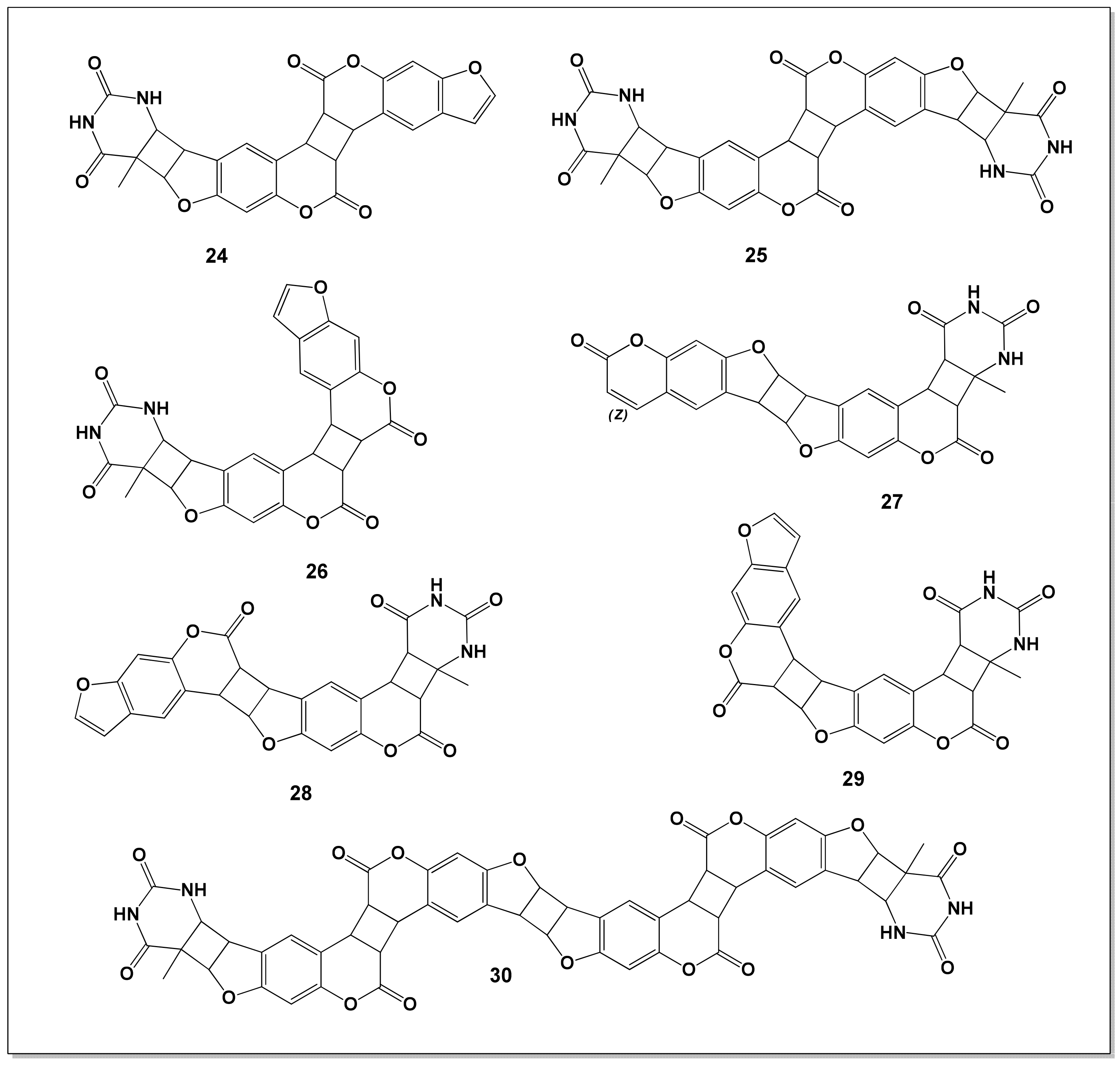 - Dembitsky, V.M. Highly oxygenated cyclobutane ring in biomolecules: Insights into structure and activity. Oxygen 2024, 4, 181–235. [Google Scholar] [CrossRef]