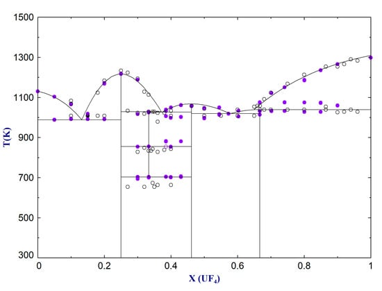4.2. Phase Equilibria Determination of the Pseudo-Ternary NaF-KF-UF4 Mixtures