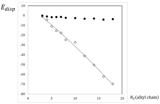 After qualitatively demonstrating the existence of dispersion forces, we used the results in Table 8 to quantitatively assess the strength of this interaction. To quantify the dispersion interactions in triglycerides, we assume that the differences between experimental enthalpies of vaporisation and additive values reflect the amount of non-additive forces (denoted as Edisp, see Table 8 and Figure 5).