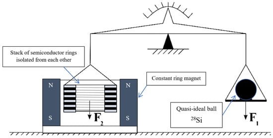 In such scales, the gravity force  acting on an exemplary load (in this case, a quasi-ideal silicon ball) is compensated by the Ampere force