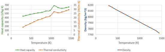 - Mills, K.C. “Ni—IN 718,” in Recommended Values of Thermophysical Properties for Selected Commercial Alloys. In Woodhead Publishing Series in Metals and Surface Engineering; Mills, K.C., Ed.; Woodhead Publishing: Cambridge, UK, 2002; pp. 181–190. [Google Scholar] [CrossRef]