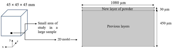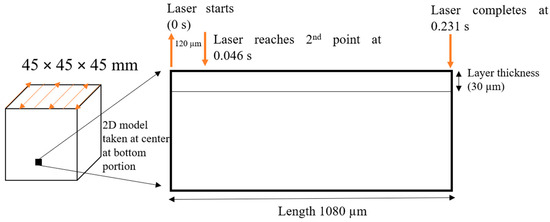 | Previously solidified layers and the new layer → Room temperature (25 °C) | Top surface of powder → | Convection (convective heat transfer coefficient and using heat flux node) |