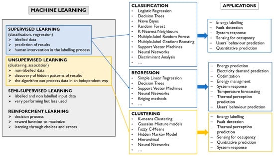 ML is useful for modelling and predicting outcomes. Examples of ML applications in the energy field include the design and optimization of a building–plant system in order to achieve, for instance, reductions in energy consumption, costs, greenhouse gas emissions, discomfort, etc.
