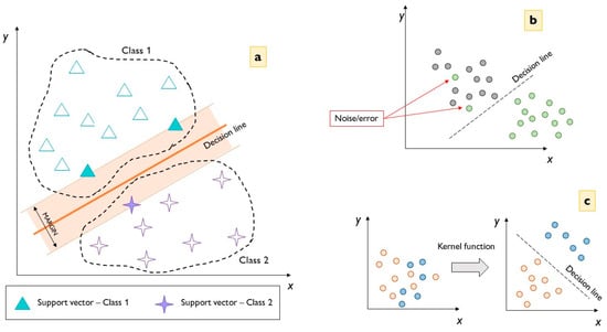 - Somvanshi, M.; Chavan, P.; Tambade, S.; Shinde, S.V. A review of machine learning techniques using decision tree and support vector machine. In Proceedings of the 2016 International Conference on Computing Communication Control and Automation (ICCUBEA), Pune, India, 12–13 August 2016; pp. 1–7. [Google Scholar]