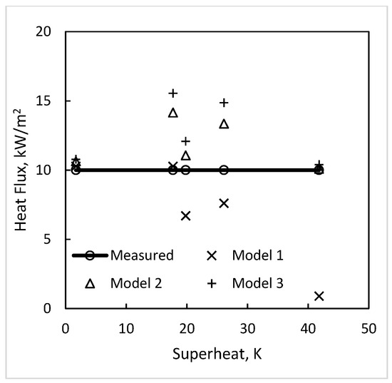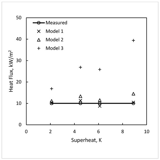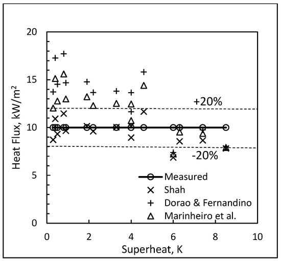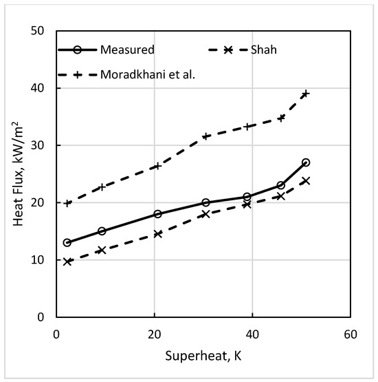 Altman et al. (1959) [19] performed tests with R-22 superheated up to 23 K. They concluded that the change in the heat transfer coefficient is not related to the extent of superheating but is related to ΔTSAT. They only reported the mean heat transfer coefficient, and sufficient details have not been provided for their analysis.