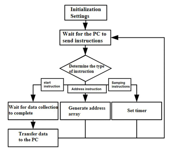 The microcontroller unit (MCU) communicates with the host computer and controls the acquisition circuit’s working sequence. This involves providing gating address signals for the DG406 multiplexer, reading ADC output signals, and supplying the ADC’s working clock. Figure 3 illustrates the MCU workflow.