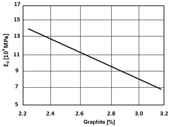 Its value depends mainly on the proportion of graphite in the structure of GJL, as shown in Figure 1 [22], and it rapidly increases with a decrease in the content of graphite. Therefore, it is necessary to ensure the highest graphitization ability in cast iron. This means the highest Sc (degree of saturation) and slow solidification of the casting speed.
