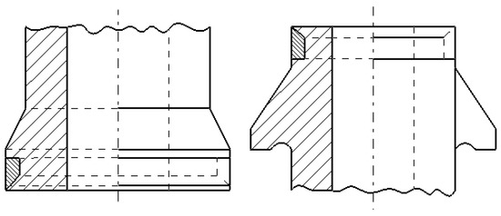 An example of thermal stress of a metal plate and the walls of ingots is shown in Figure 3. The structural modification (strengthening of ingots’ ends) to reduce longitudinal cracking is shown in Figure 4 [11].