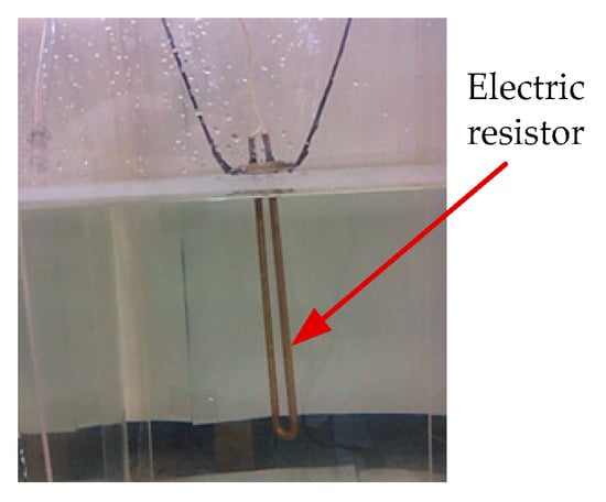To change the physical properties, the water was heated to 30 °C with the help of a 1200 W electric resistor (Figure 3) from G.R.ELETTROFIAMMA S.N.C., Oppido Lucano, Italy.