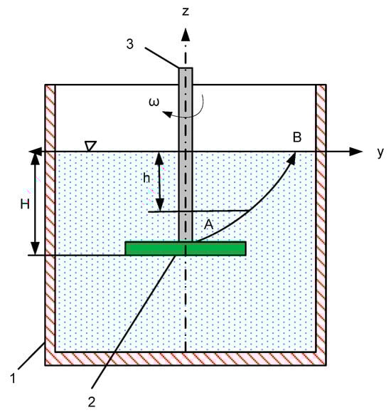 Computational notations: 1—water tank; 2—fine-bubble generator; 3—compressed air supply pipe that also serves to perform the rotation movement.
