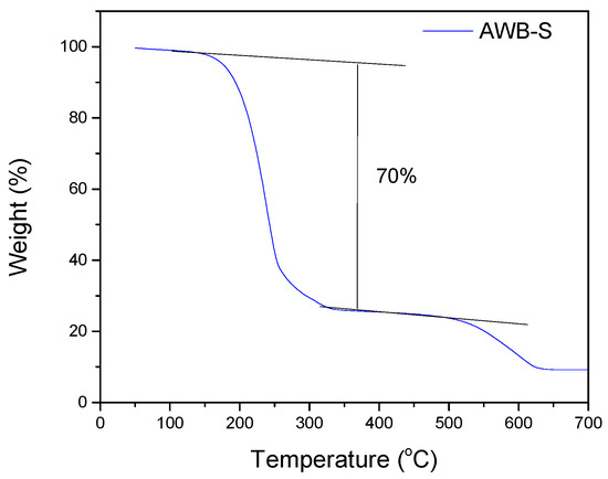 Thermogravimetric analysis (TGA) curve for AWB-S in a nitrogen atmosphere.