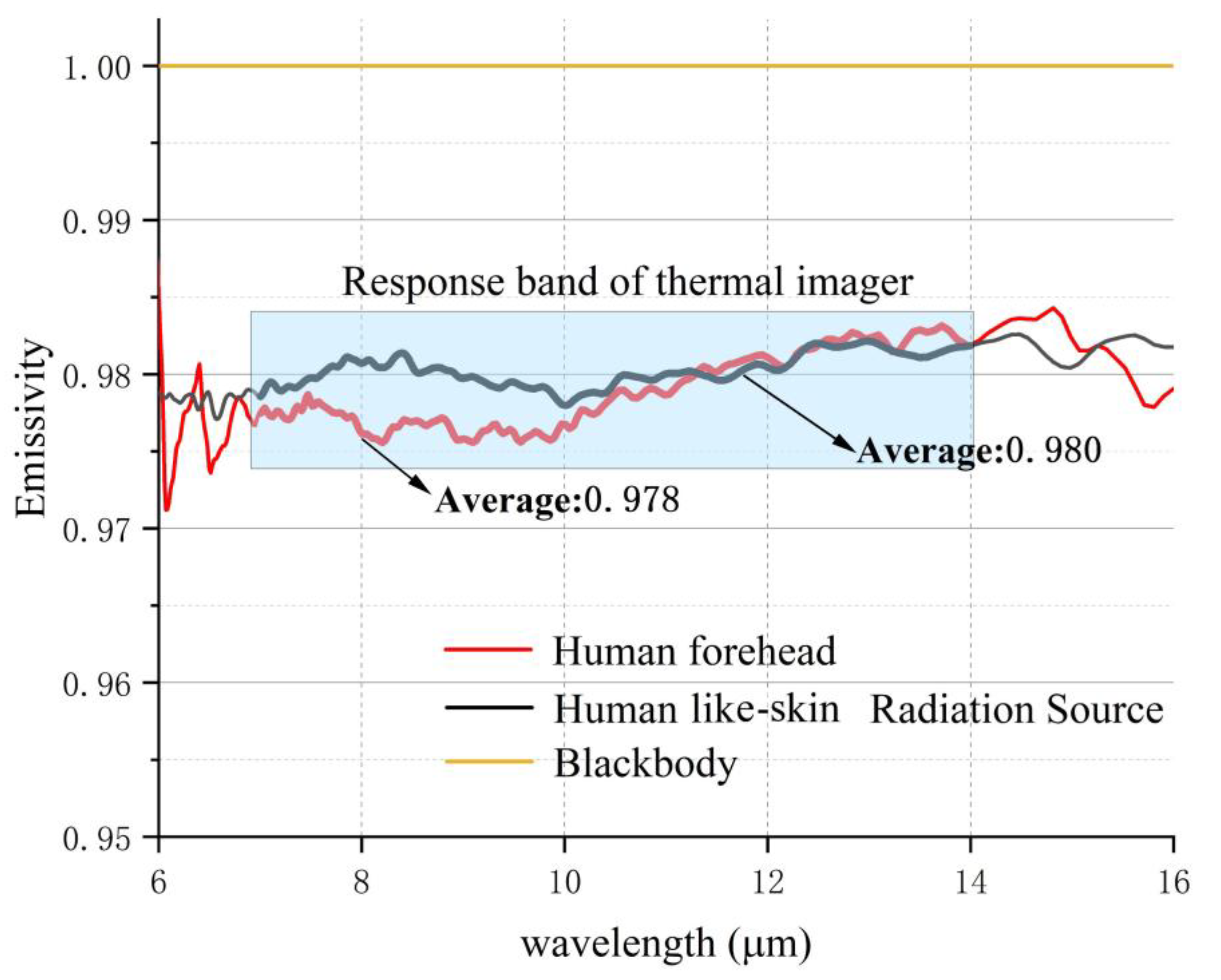 | Difference between standard plate emissivity and human forehead skin emissivity | 0.010 | 0.010 | 0.010 | 0.010 | 0.010 | 0.010 |