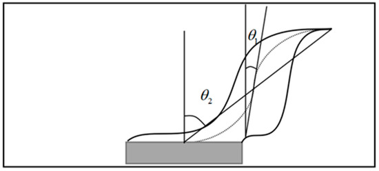 In recent years, numerous researchers have investigated the flame characteristics beneath the ceiling during fires occurring in elongated and confined spaces, yielding relevant research outcomes. Japanese scholar Kurioka [3] conducted fire experiments involving oil pans in tunnels with horseshoe-shaped and rectangular cross-sections. Further in-depth studies were carried out by setting two different flame tilt angles, denoted as θ1 and θ2, as shown in Figure 1.