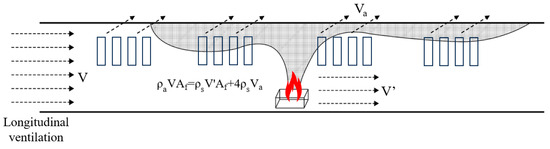 where is the air density (kg/m3), is the smoke density (kg/m3), is the longitudinal wind speed (m/s), is the actual wind speed in the tunnel, Va is the smoke exhaust rate (m3/s).