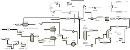 Flowsheet of the integrated BGCC-CCU-ORC system.