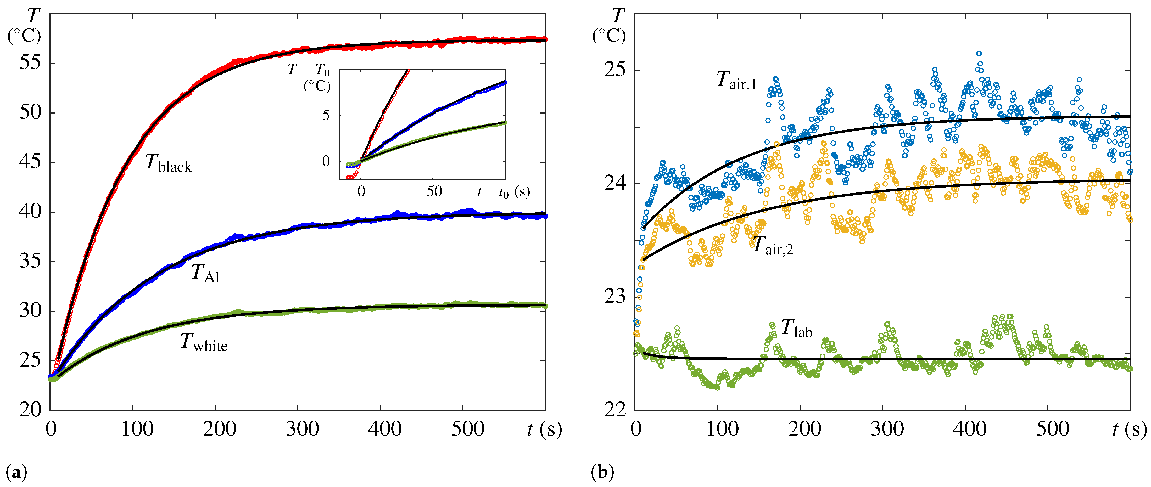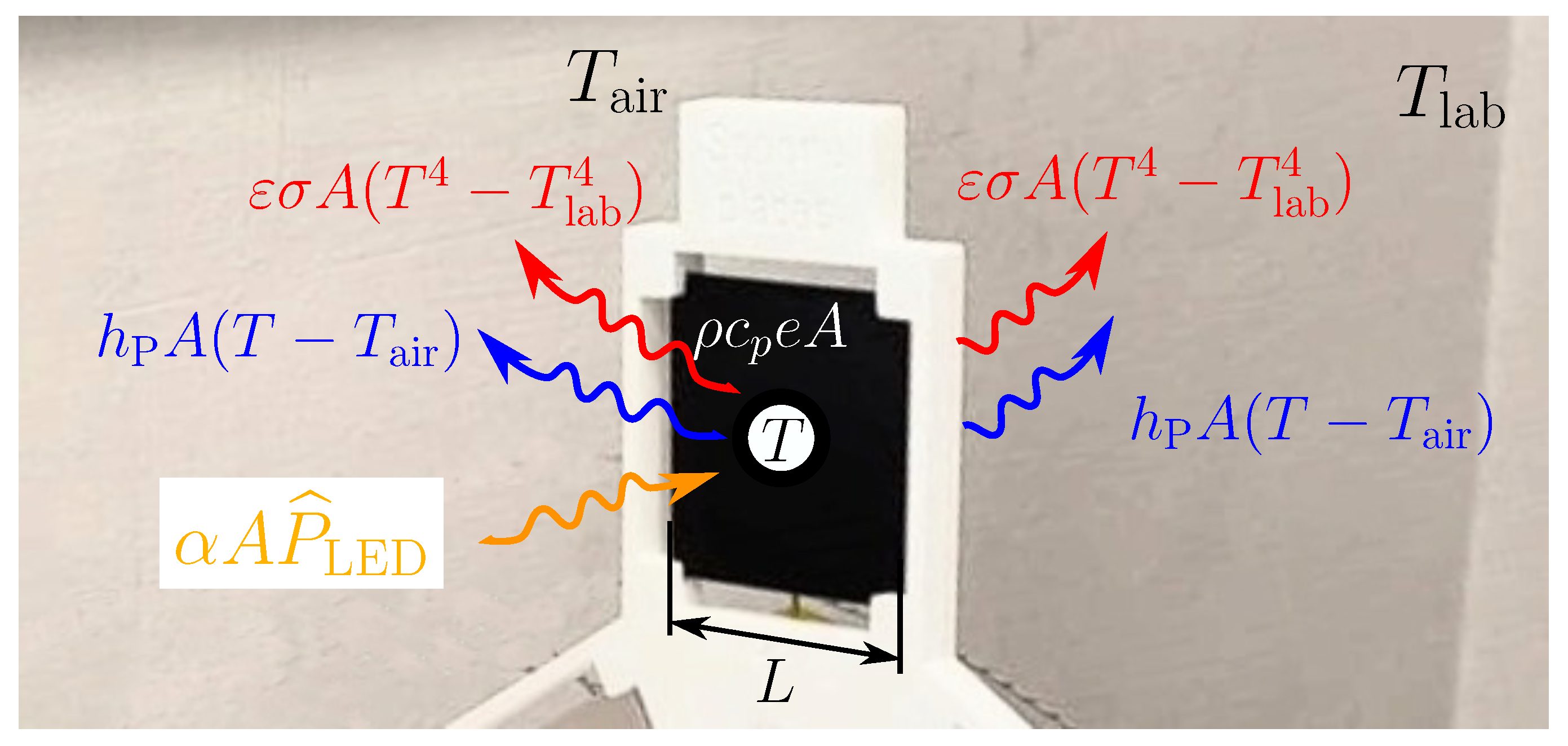 4.2.1. Energy Balance and Equilibrium Temperature of the Plate