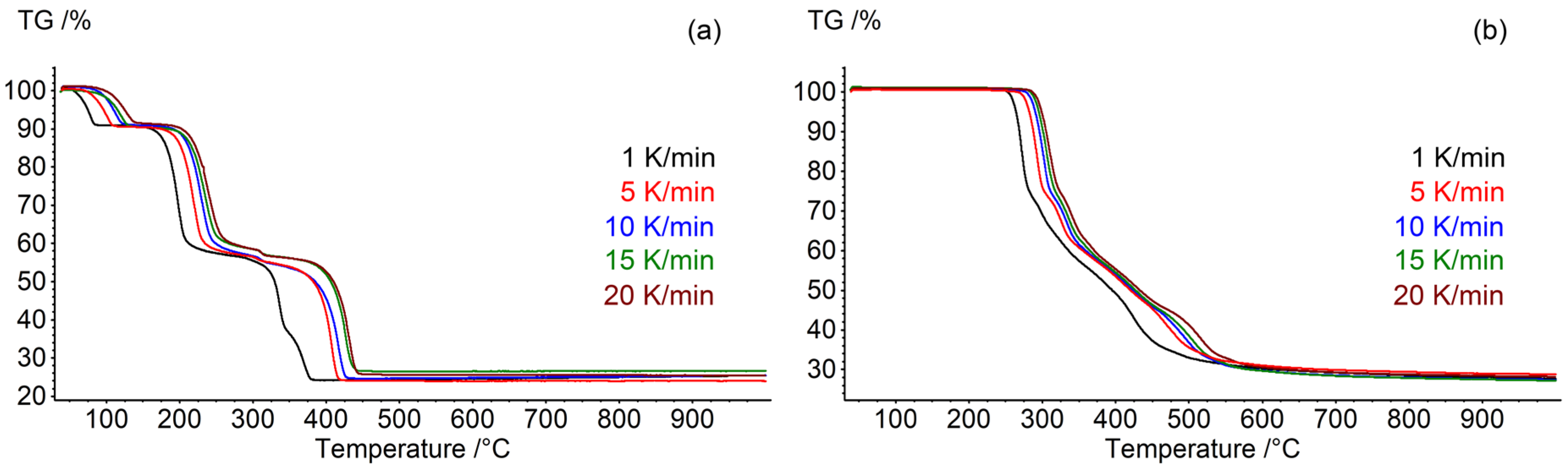 - Domonov, D.P.; Pechenyuk, S.I.; Semushina, Y.P.; Yusenko, K.V. Solid-state transformations in inner coordination sphere of [Co(NH3)6][Fe(C2O4)3]∙ 3H2O as a route to access catalytically active Co-Fe materials. Materials 2019, 12, 221. [Google Scholar] [CrossRef]
