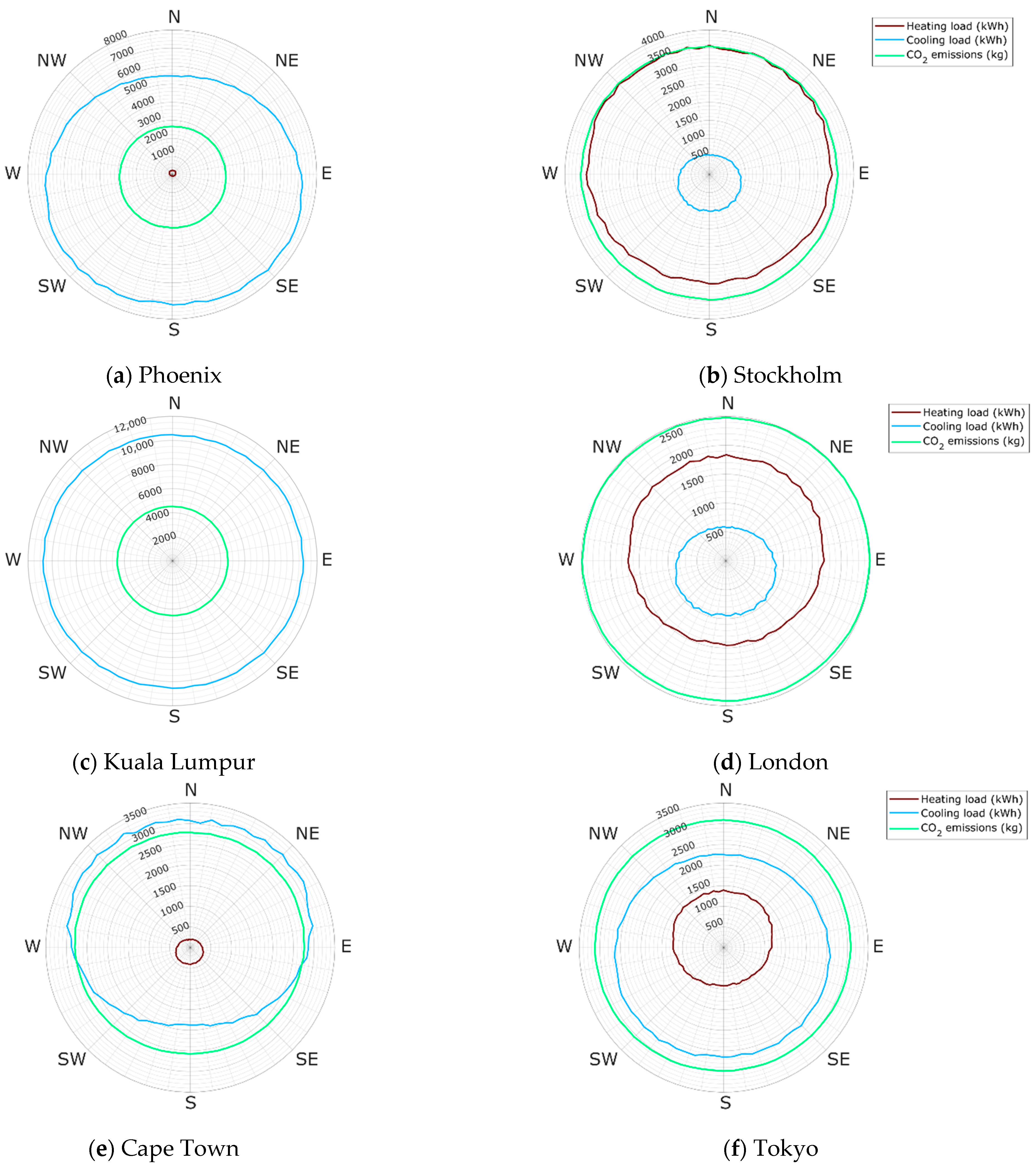 Appendix A. Results for Cooling and Heating Loads and CO2 Emissions for Different DSF Configurations in Selected Cities