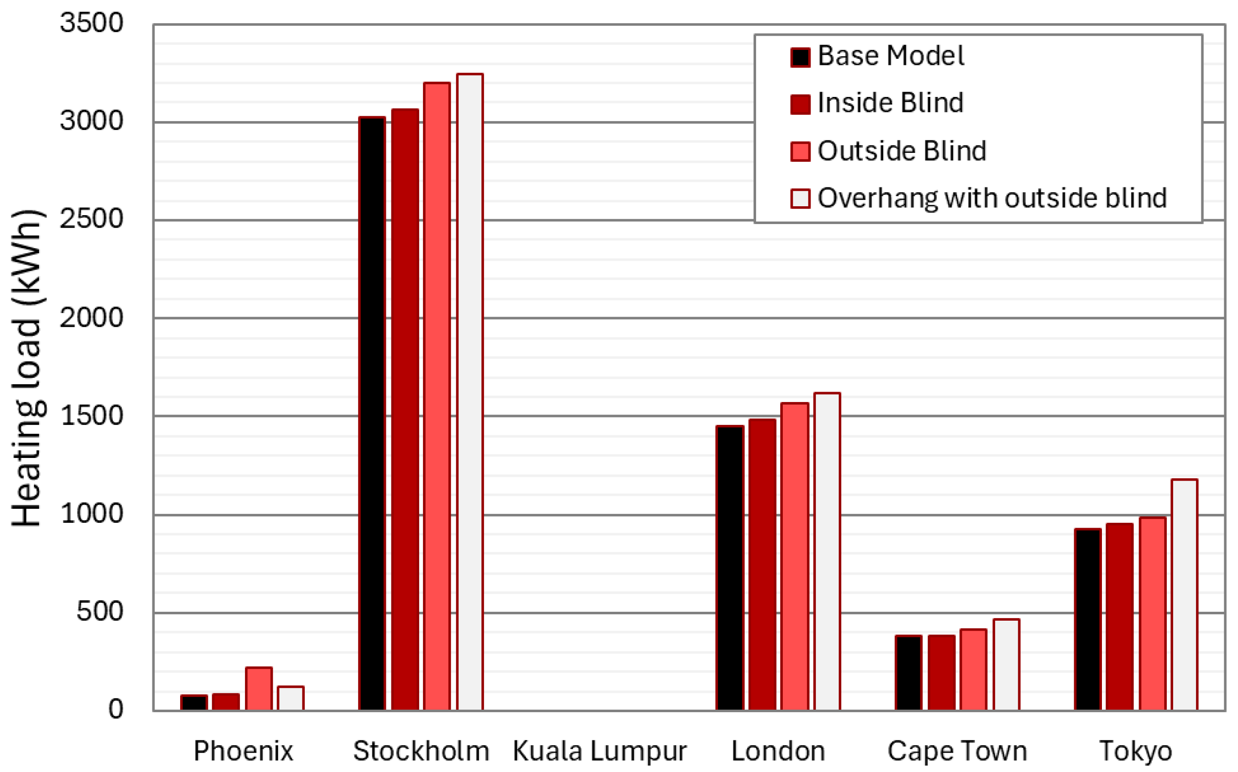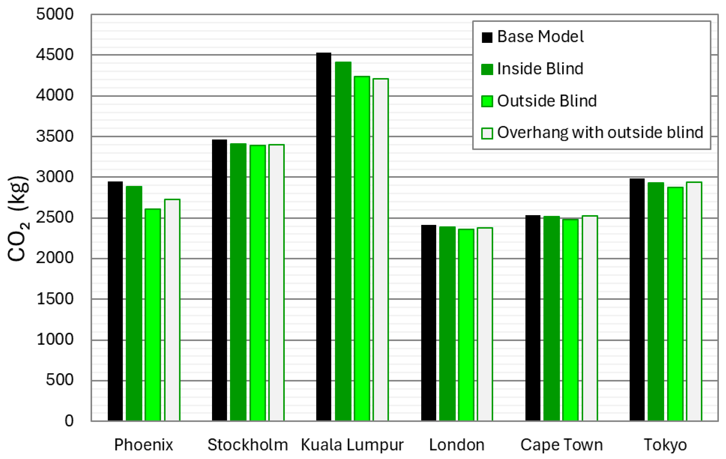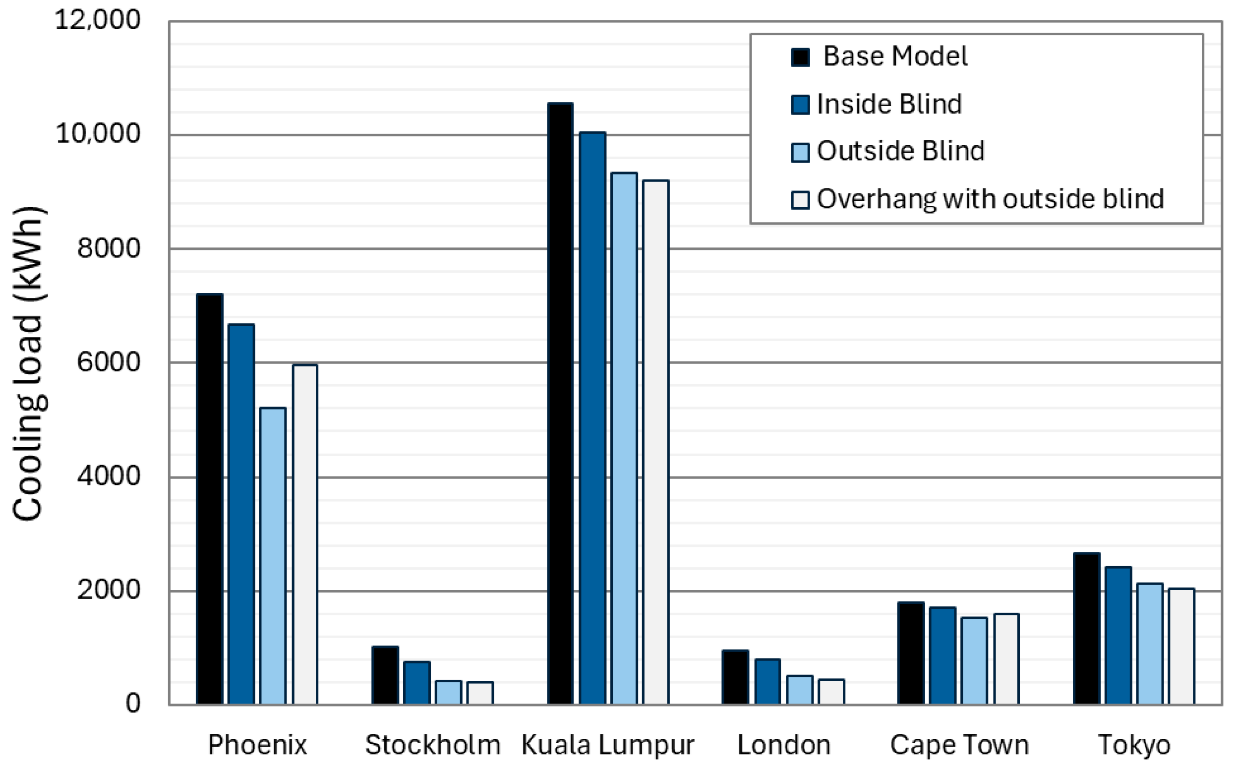 | City | Base Model | Inside Blind | Outside Blind | Overhang with Outside Blind |