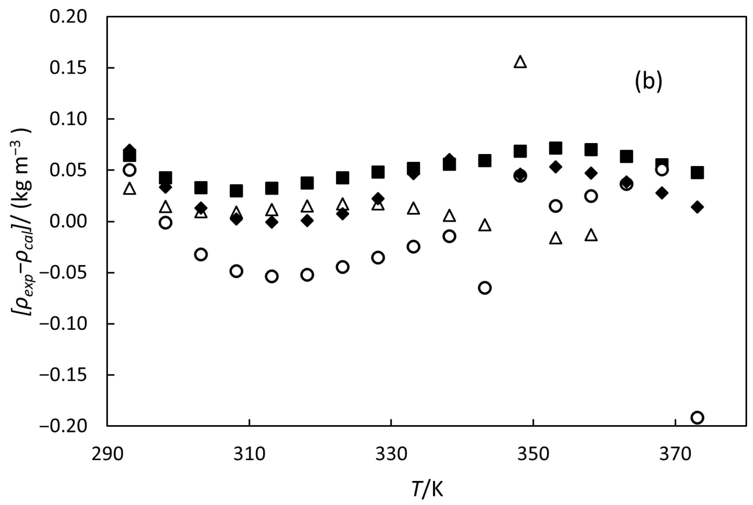 | T/K | ρexp/kg m−3 | ρlit/kg m−3 | 100 (ρexp − ρlit) ρexp−1 |