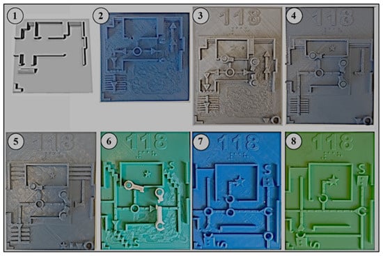 Figure 8. Furthermore, it is important to understand that the use of 3D-printing provides an alternative production approach that is more accessible to map creators and users. Additionally, user feedback is critical for design of maps optimized for the user needs and experience. Finally, if the maps are created for individuals who are not blind but have limited vision, maps should be printed using two colors. Specifically, background and all encoded elements should have contrasted colors, e.g., black and white. Depending on how much they can process visually, this might help them to process the map faster.