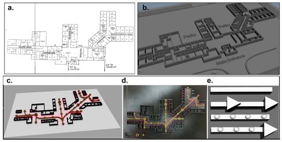 Figure 4e). All these representations were tested for various line widths and elevations. In some of the maps, pathways were interrupted by other symbols, such as doors or stairs. It was observed that if a path had a gap or was obstructed, it became more difficult for the users to follow. The user feedback revealed that a continuous path provides the best readability while communicating travel routes.