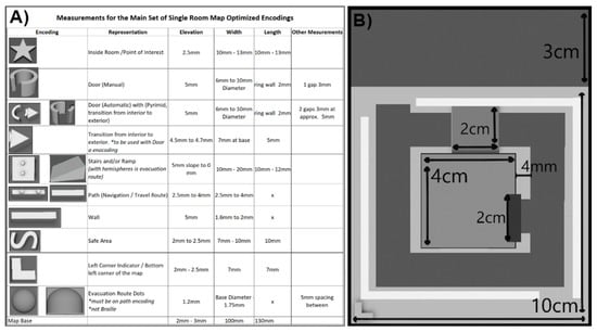 28], a set of twenty-eight tactile symbols was tested using microcapsule paper, and representations of exterior elements were found to be discriminable and easy-to-use by study participants. Recently, studies of this symbol set have been applied to 3D-printing and were shown to be accepted among blind users [