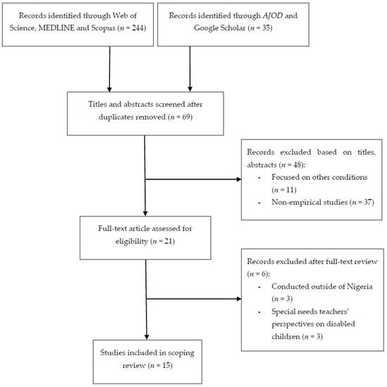 APA StyleSango, P. N., & Deveau, R. (2022). A Scoping Review of Empirical Literature on People with Intellectual Disability in Nigeria. Disabilities, 2(3), 474-487. https://doi.org/10.3390/disabilities2030034