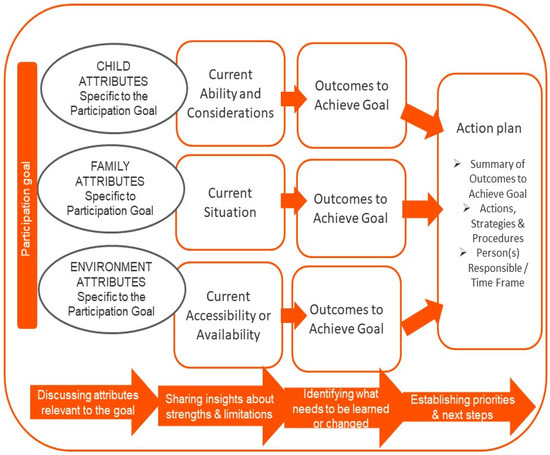 Palisano, R.J.; Chiarello, L.A.; Vänskä, N.; Sipari, S. Content Validity and Utility of the Collaborative Process for Action Plans to Achieve Children’s Participation Goals. Disabilities 2022, 2, 626-640. https://doi.org/10.3390/disabilities2040045