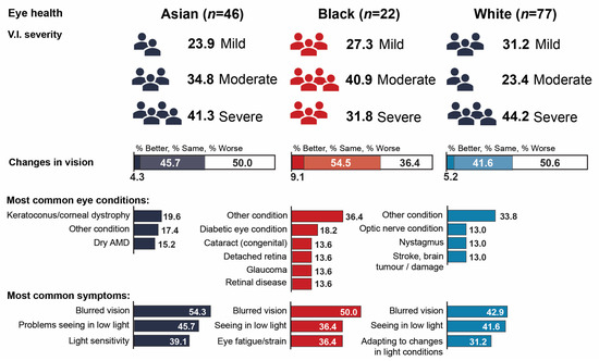 APA StyleHussain, S. F., Heinze, N., & Gomes, R. S. M. (2024). Health and Comorbidities in Minority Ethnic Adults Living with Visual Impairment in the UK. Disabilities, 4(1), 79-100. https://doi.org/10.3390/disabilities4010006